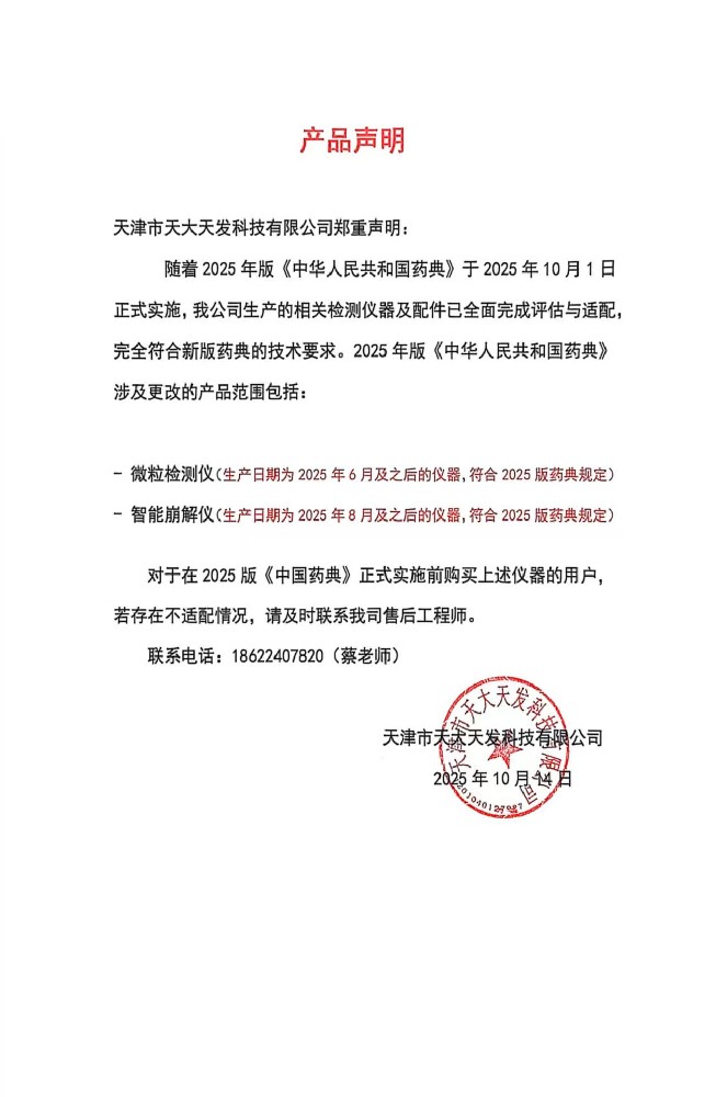 尊敬的各界朋友們: 歡迎您進(jìn)入天津市天大天發(fā)科技有限公司的網(wǎng)站進(jìn)行瀏覽,首先感謝各界朋友多年來對(duì)天大天發(fā)藥品檢測(cè)儀器和分析儀器的關(guān)心與支持! 天津市天大天發(fā)科技有限公司是通過ISO9001質(zhì)量管理體系認(rèn)證、ISO14001環(huán)境管理體系的認(rèn)證的高新技術(shù)企業(yè),是專業(yè)的藥檢儀器和分析儀器的制造廠商。 我們的產(chǎn)品包括藥品溶出儀系列、微粒檢測(cè)儀系列、內(nèi)毒素檢查儀系列等40余種產(chǎn)品,主要產(chǎn)品覆蓋了全國所有省區(qū),部分產(chǎn)品已進(jìn)入海外市場(chǎng)。公司在藥檢領(lǐng)域樹立了良好的品牌形象,贏得了廣大用戶的贊譽(yù)。 公司將更好地適應(yīng)瞬息萬變的市場(chǎng),增強(qiáng)企業(yè)的核心競(jìng)爭(zhēng)力。抓住全球經(jīng)濟(jì)飛速發(fā)展的歷史性機(jī)遇,以創(chuàng)新精神進(jìn)行新的創(chuàng)業(yè)。以高起點(diǎn)、高速度、高效率創(chuàng)造出中國藥品檢測(cè)儀器和分析儀器領(lǐng)域中的品牌形象,立足中國,走向國際。 我們熱切希望您成為天大天發(fā)科技有限公司的合作伙伴! |